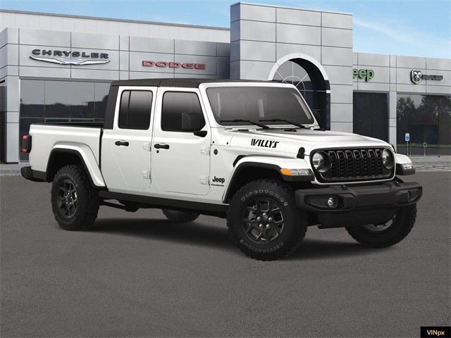 Bright White Clearcoat 2025 Jeep Gladiator Willys 4WD 8-Speed Automatic 3.6L V6 24V VVT 4X4 / 4WD / AWD, Bluetooth® / Uconnect / Handsfree, 4-Wheel Drive Decal, Advanced Brake Assist, Air Conditioning w/Auto Temperature Control, Automatic Headlamps, Auxiliary Switches, Black Grille, Body Color Fender Flares (2-Piece), Class IV Receiver Hitch, Cluster 7.0 TFT Color Display, Convenience Group, Corning Gorilla Glass, Daytime Running Lamp System, Daytime Running Lamps LED Accents, Deep Tint Sunscreen Windows, E-Locker Rear Axle, Emergency/Assistance Call, Enhanced Adaptive Cruise Control, Front Door Locks 2-Door Passive Entry, Front Heavy Duty Red Accent Shock Absorbers, Front LED Fog Lamps, Full Speed Forward Collision Warning Plus, Heated Front Seats, Heated Steering Wheel, Heavy-Duty Engine Cooling, LED Premium Reflector Headlamps, LED Taillamps, Mold In Color Bumper w/Gloss Black, MOPAR All-Weather Slush Mats, Off-Road Plus Mode, Power Heated Mirrors, Premium Wrapped Steering Wheel, Protection Sill Rails, Quick Order Package 24W Willys, Rear Heavy Duty Red Accent Shock Absorbers, Remote Start System, Security Alarm, Sun Visors w/Illuminated Vanity Mirrors, Trailer Hitch Zoom, Universal Garage Door Opener, Wheels: 17 x 7.5 Painted Black, Willys Hood Decal, Willys Suspension. Price includes: $2250 - 2025 National Retail Bonus Cash . Exp. 02/02/2026