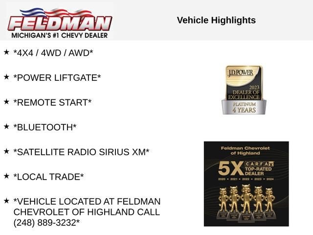 *4X4 / 4WD / AWD*, *POWER LIFTGATE*, *REMOTE START*, *Bluetooth®*, *SATELLITE RADIO SIRIUS XM*, *LOCAL TRADE*, *VEHICLE LOCATED AT FELDMAN CHEVROLET OF HIGHLAND CALL (248) 889-3232*, *GENERAL MOTORS AWARD TOP CUSTOMER SERVICE DEALERSHIP IN METRO DETROIT*, AWD.