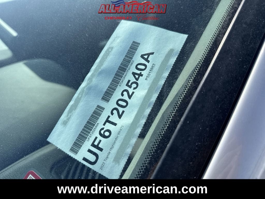 Pearl 2023 Toyota Highlander L FWD 8-Speed Automatic 2.4L I4 PDI Turbocharged DOHC 16V LEV3-SULEV30 265hp 18 Painted Alloy Wheels, 3.329 Axle Ratio, 3rd row seats: split-bench, 6 Speakers, AM/FM radio: SiriusXM, Apple CarPlay/Android Auto, Auto High-beam Headlights, Bumpers: body-color, Driver door bin, Driver vanity mirror, Fabric Seat Trim, Front Center Armrest, Heated door mirrors, Outside temperature display, Passenger door bin, Power driver seat, Radio: 8 Toyota Audio Multimedia, Rear reading lights, Rear seat center armrest, Reclining 3rd row seat, Split folding rear seat, Spoiler.